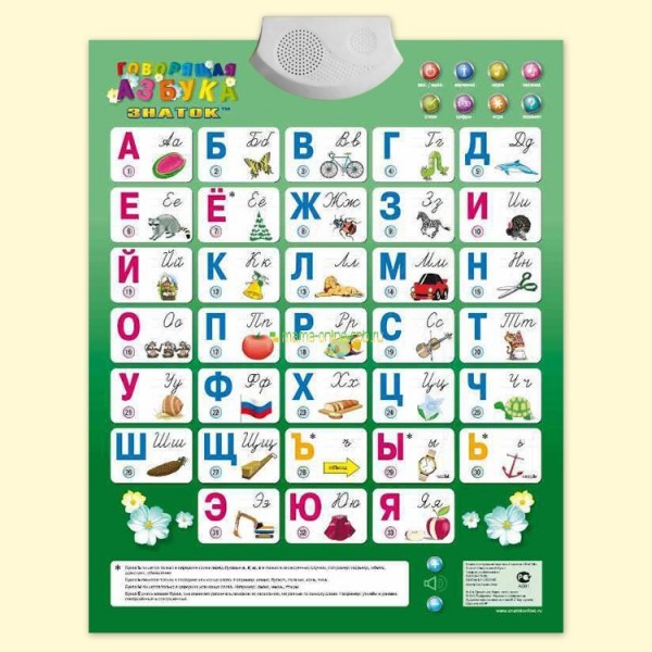 Кнопки «Изучение» и «Экзамен» помогут изучить алфавит и проверить умение в узнавании букв. Кнопка «Игра» позволит малышам познакомиться с алфавитом с помощью картинок. Регулируемая громкость воспроизведения позволит детям не мешать соседям и родителям при игре с Азбукой. Возможность самостоятельного изучения букв Азбуки Прописи, рекомендованные Министерством образования и науки РФ